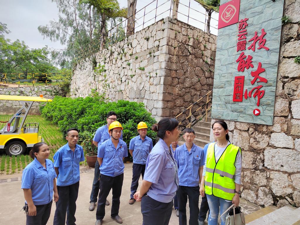在選礦車間,吳君首先參觀了蘇云霞技能大師工作室,看望慰問技能大師蘇云霞、余歡、段思佳,并與技能大師及其徒弟們進(jìn)行座談,詳細(xì)了解了大師工作室建設(shè)、師帶徒,磨礦、浮選、重選工藝流程及黨建特色工作等情況,對大師工作室目前踐行“典型引路法”和“一線工作法”所開展的師帶徒工作、成立大師技術(shù)攻關(guān)組的做法和成效給予肯定。在座談過程中,吳君指出:技能大師是云錫稀缺的財富,各級管理人員要為技能大師們做好服務(wù)、支撐和保障,讓技能大師培育新人的土壤更肥、培育新人的空氣更清新,努力培養(yǎng)出像耿家勝一樣的國家級技能大師。