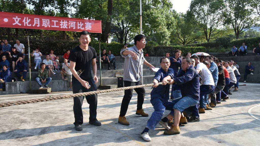 9月9日,郴州公司舉辦男女混合職工拔河比賽。本次拔河由6支代表隊、每隊15人參加,分淘汰賽和積分循環賽兩個階段進行。隨著哨聲響起,隊員們情緒高漲,齊心協力,鉚足干勁拉動繩索,使出渾身解數,你爭我奪,盡情揮灑著激情和喜悅?,F場掌聲和歡笑聲此起彼伏,吶喊聲、助威聲、歡呼聲將整個比賽推向高潮。經過近2個小時的激烈角逐,比賽前三名各歸其主。