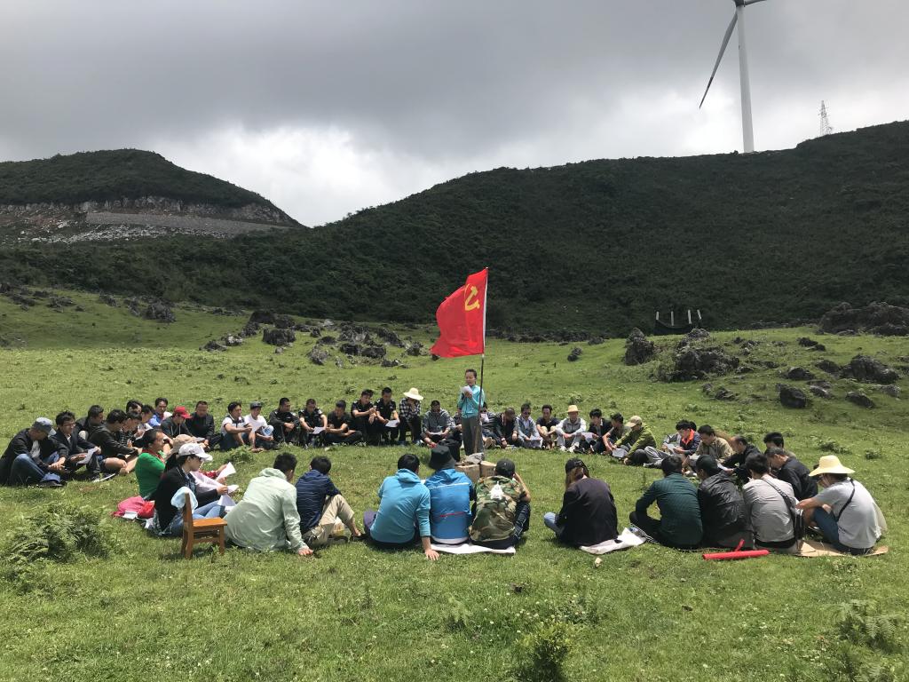 經過3個多小時的路程,到達了目的地。延綿不斷的綠草地,抬手可觸的天空,不遠處悠悠轉動的風力發電塔,讓黨員們異常興奮。有的大口呼吸著新鮮空氣,有的在綠地上隨意奔跑,有的登高望遠,有的不停擺造型自拍。一番開心后,藍天白云下,黨員們在鮮紅的黨旗前重溫了入黨誓詞,并圍坐在黨旗周圍齊聲誦讀黨章、學習十九大知識,歌唱“沒有共產黨就沒有新中國”“團結就是力量”。隨后還開展了丟手絹、泡泡糖游戲,讓大家重拾童趣、歡聲笑語不斷。