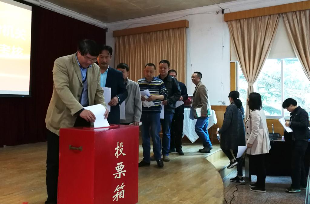 會上,每一位現(xiàn)場述職的中級正副職管理人員采用PPT形式,在規(guī)定的10分鐘時間內(nèi),分別從自己2017年度的履職情況、廉潔從業(yè)情況、存在的問題和不足、今后的努力方向等方面進行了認真詳實的述職述廉匯報。全體與會人員本著為組織、為干部負責和實事求是的態(tài)度,對51位機關中級正副職管理人員進行了嚴肅認真的民主考核評分。其中:公司領導考核評分占75%、所屬單位黨政領導考核評分占10%、機關部門中級管理人員相互考核評分占10%、機關部門職工代表評分占5%,根據(jù)考核評分結(jié)果加權計算最終考核得分。